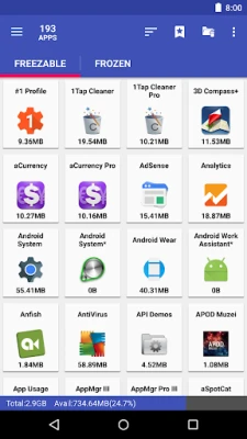 You can freeze apps so they won't use any CPU or memory resources and consume zero battery. It's good for you to freeze apps that you would like to keep in the device, but don't want them to run or be uninstalled.