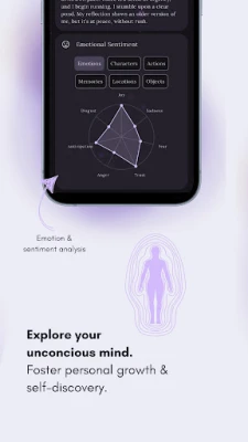 Understand the emotions behind your dreams. Dreamseer's Emotional Insights analyze your dream text, detecting key emotions, places, people, and objects to reveal deeper connections between your feelings and subconscious experiences.