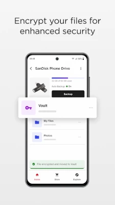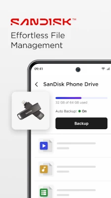 Use the app with compatible SANDISK® USB flash drives such as the SANDISK® Phone Drive, SANDISK® external solid-state drives, and the SANDISK® microSD™ cards (sold separately). It’s easy to back up,2 transfer, and manage your photos, videos, contacts, and files, between your Android™ phone and your computer.